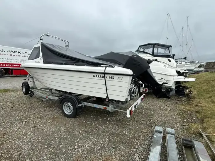 The Warrior 165 came into being as a result of the need to travel further offshore faster, to reach distant marks. The boats performance is superb, combining superior manoeuvrability with speed. It's ability to turn at high speed without heel or side slip is remarkable, over rough water there are few equals. The unique bow flare makes slamming and spray over the cabin a thing of the past! There is no substitute for weight when it comes to hulls, thats why all Warrior hulls have more Lloyds approved materials than any of our competitors, just check the boat weights. More deck space, more freeboard and more standard features that would be extras on other boats. The high specification and the extensive accessory range makes the Warrior 165 a boat to suit most tastes and preferences, and of course the pocket. We can cater for most individual requirements, just ask. Warrior Boats have joined forces with major trailer manufacturers to produce a 'Warrior spec' Roller Coaster trailer, making launching and retrieving a one man operation. With most Warrior 165 boat, engine and trailer packages weighing around 1100kg, it is easily towed behind the average family car.